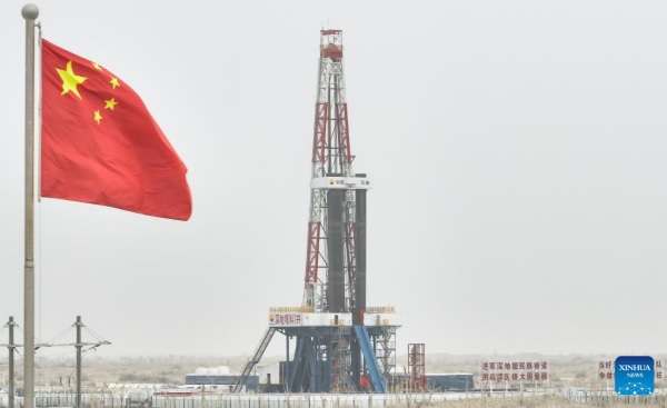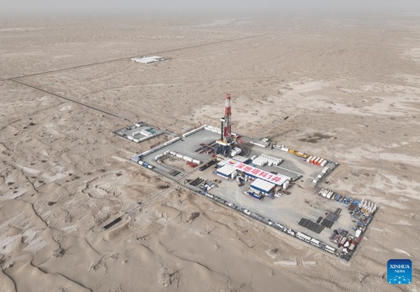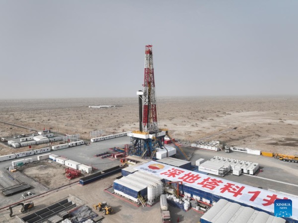 Located in the hinterland of the Taklimakan Desert in the Tarim Basin, the "Shenditake 1" is expected to reach a designed depth of 11,100 meters upon completion. It is China's first scientific exploration borehole designed to exceed a depth of 10,000 meters. (Xinhua/Li Xiang)