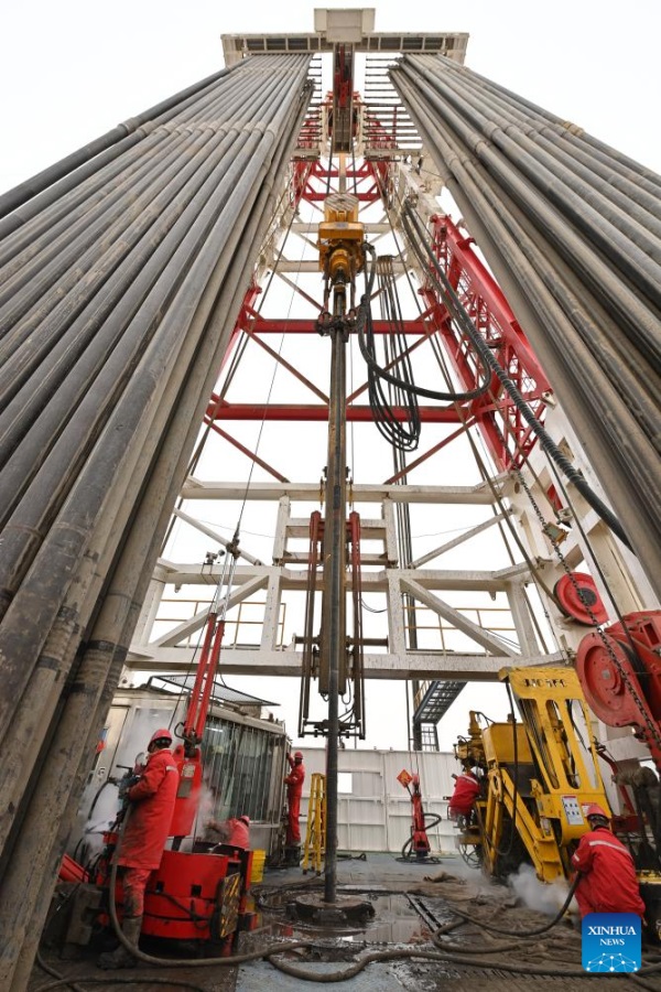 URUMQI, March 4 (Xinhua) -- The drilling of a superdeep borehole in northwest China's Xinjiang Uygur Autonomous Region reached 10,000 meters at 2:48 p.m. Monday and is going deeper, marking a breakthrough in the country's deep-Earth exploration.